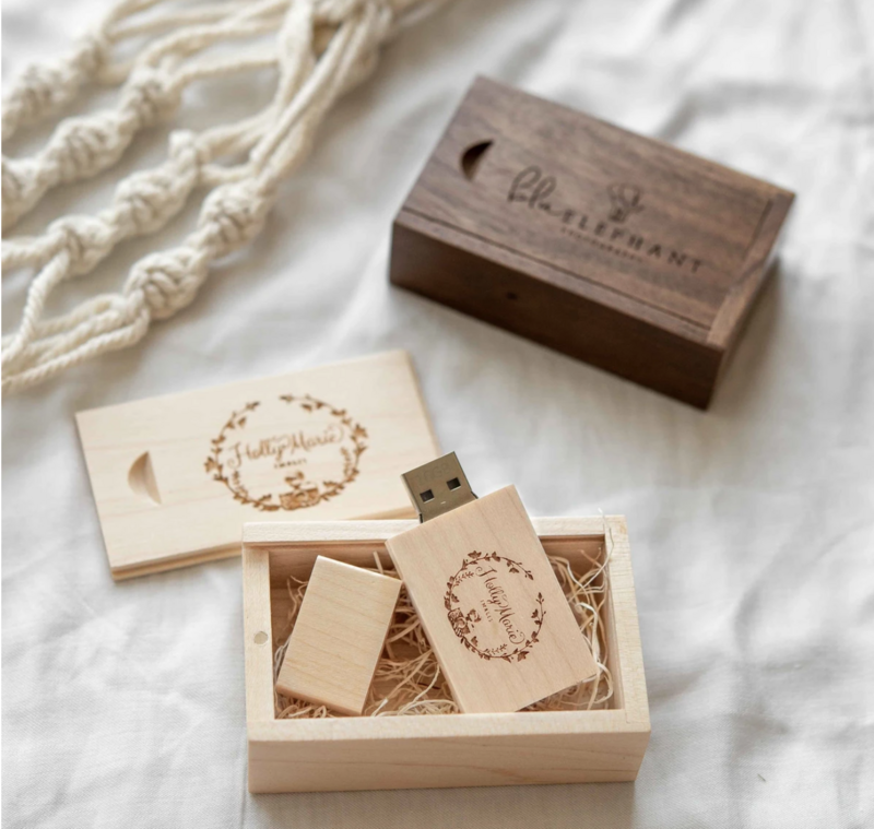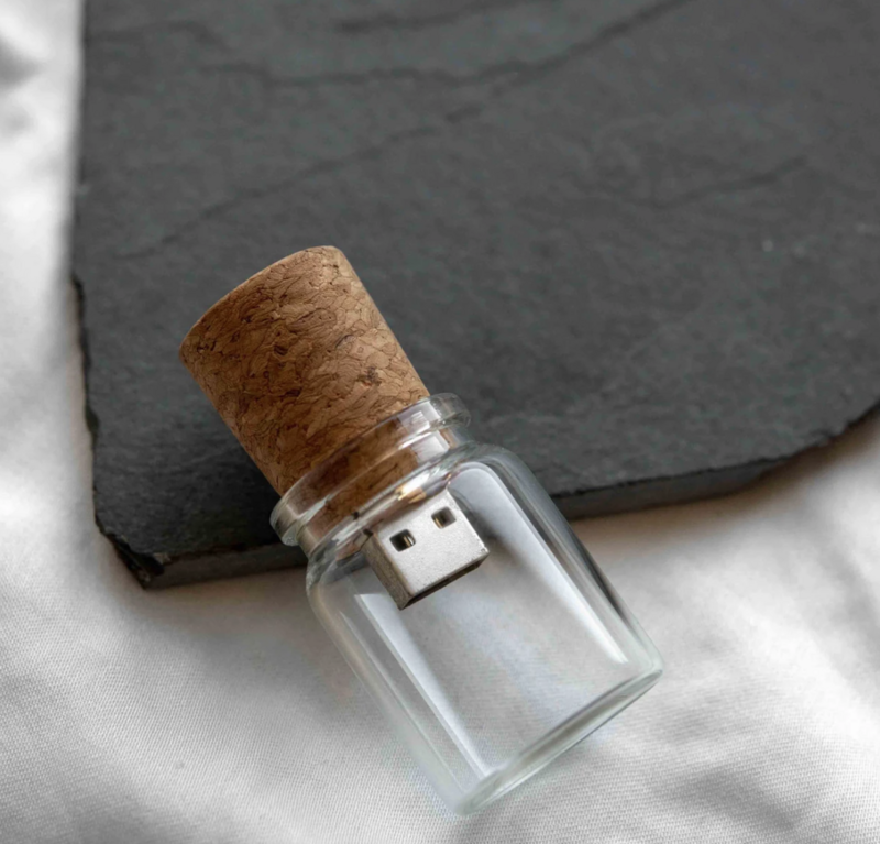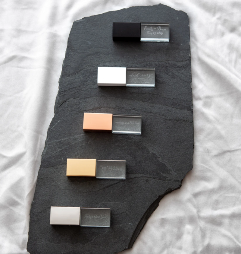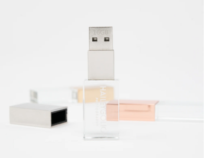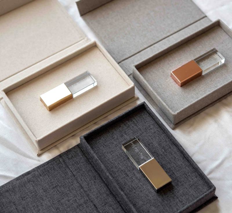 Crystal Glass USB with Cream, Charcoal, or Grey Linen Box